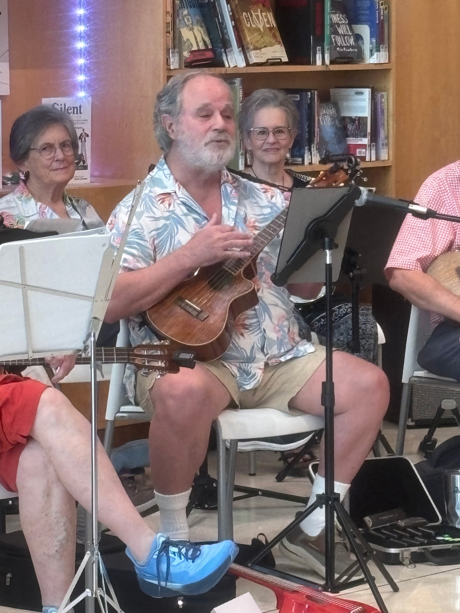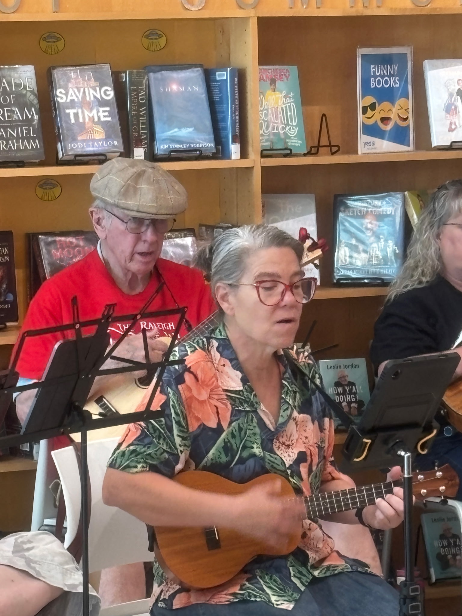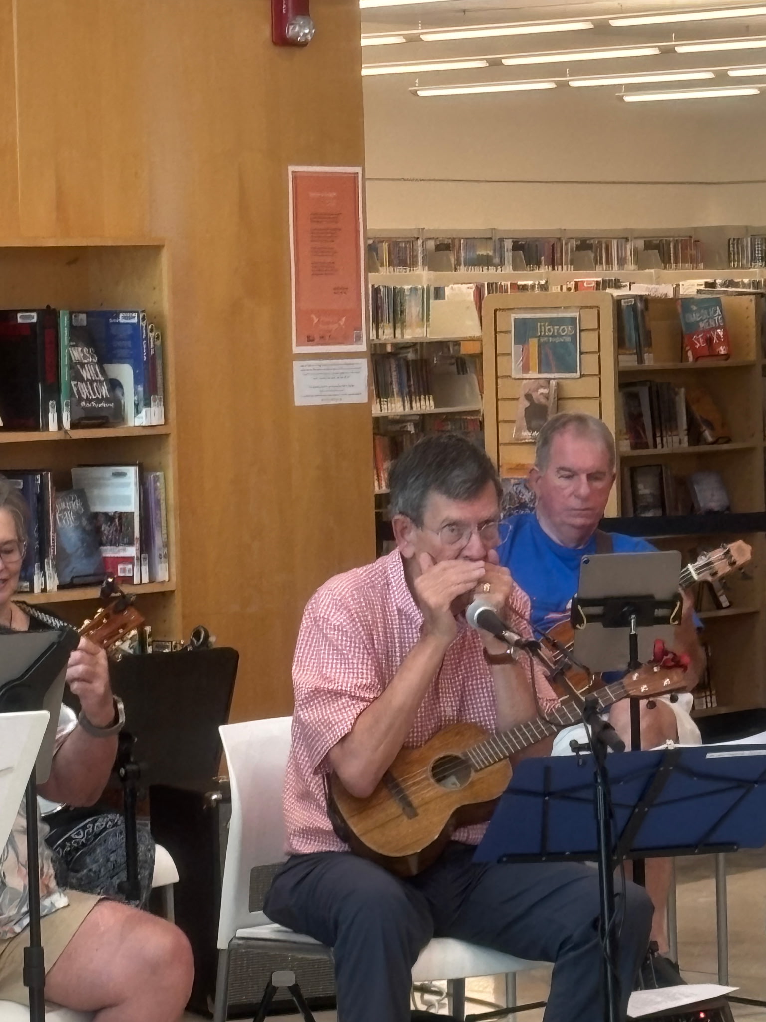 Raleigh Uke Jam has participated in Make Music Day for the past 7 years, and the past three years has given a one-hour performance at the Oberlin Regional Library. Additionally, this year RUJ member, George Douglas, gave a harmonica workshop at Azure Violin. And, Ukulele Band, Far From Done performed a three-hour concert on the Gizmo Brewery outdoor stage.
